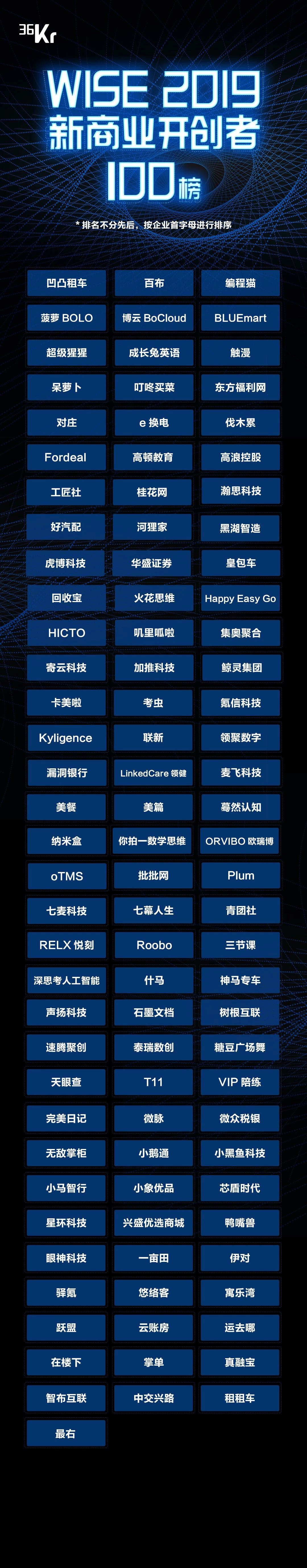 于是,36氪找到了 “100 家新商業引領者”和 “100 家新商業開創者”企業。在36氪看來,他們在商業模式、產品能力、技術創新和融資歷程上都有著極為突出的表現。