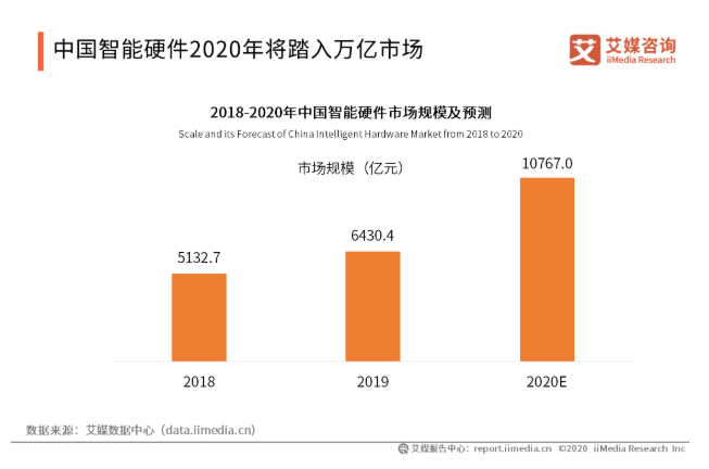 數(shù)據(jù)顯示,中國(guó)智能硬件市場(chǎng)發(fā)展較快,2020年市場(chǎng)規(guī)模預(yù)計(jì)達(dá)到10767.0億元。艾媒咨詢分析師認(rèn)為,智能制造行業(yè)發(fā)展逐漸走向成熟,依托各類(lèi)基礎(chǔ)技術(shù)支撐及應(yīng)用場(chǎng)景拓展,智能硬件成為消費(fèi)重要品類(lèi)。