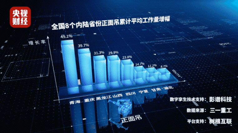 央視財經挖掘機指數顯示,2021年正面吊累計平均工作量(小時)同比增幅TOP10省份中,有8個內陸省份,其中有3個位于西北地區。這8個省份分別是青海(49.10%)、重慶、黑龍江、山西、四川、寧夏、甘肅、湖北等。