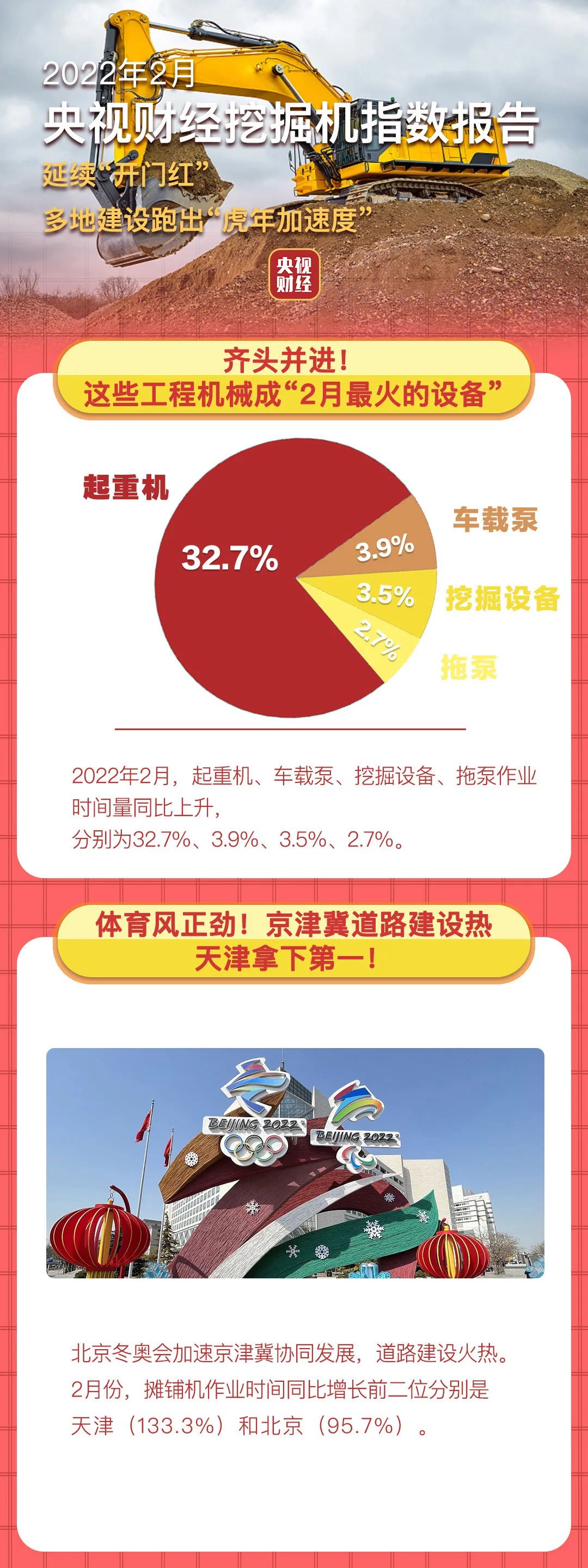 北京冬奧會加速京津冀協(xié)同發(fā)展,道路建設(shè)火熱。央視財經(jīng)挖掘機指數(shù)顯示,2月份攤鋪機作業(yè)時間同比增長前兩位分別是天津(133.3%)和北京(95.7%)。