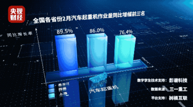 央視財經(jīng)挖掘機指數(shù)顯示,2月份,甘肅、江蘇、貴州多項工程機械作業(yè)量實現(xiàn)同比增長,其中甘肅多項工程機械作業(yè)量表現(xiàn)亮眼,履帶起重機同比增長率位列全國第一。
