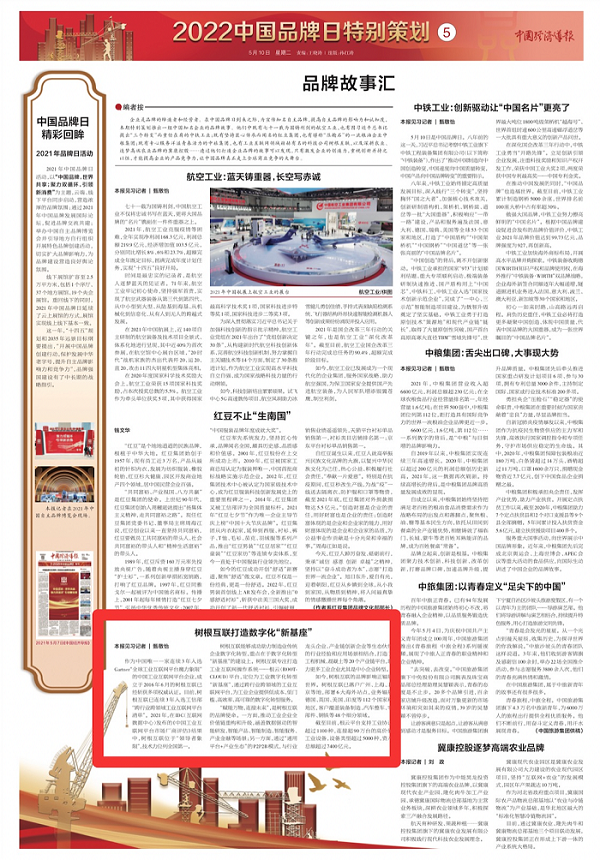 企業是品牌的締造者和經營者。在中國品牌日到來之際,為宣傳知名自主品牌,提高自主品牌的影響力和認知度,由國家發展和改革委員會主管的《中國經濟導報》特別策劃推出一組中國知名企業的品牌故事。既有七十一載為國鑄利劍的航空工業,也有因習近平總書記提出“三個轉變”而重任在肩的中鐵工業;既有堪稱“壓艙石”的一流糧油企業中糧集團,也有工業互聯網領域赫赫有名的科技公司樹根科技……透過他們打造企業品牌的故事可以發現,只有激發企業的創造力,重視創新并持之以恒,才能提高企業的產品競爭力,讓中國品牌真正走上全球商業競爭的大舞臺。