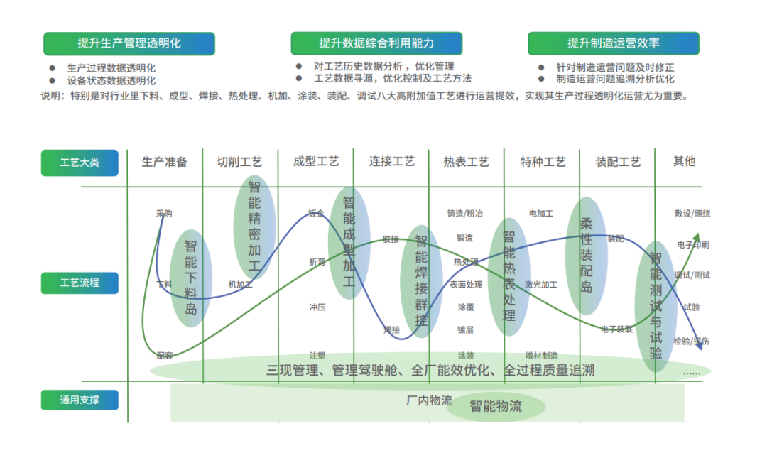 該套裝備制造行業數字化整體解決方案,以工廠為切入點,通過賦能傳統工廠實踐精益、轉型、升級,提高生產過程透明度,提升高價值工藝智能運營能力,打造卓越工廠;同時以燈塔工廠規劃咨詢與申報服務為契機,提供包括現狀調研與分析研究、燈塔工廠藍圖設計、詳細設計及可行性分析等服務,通過咨詢項目管理和知識轉移助力客戶成功。