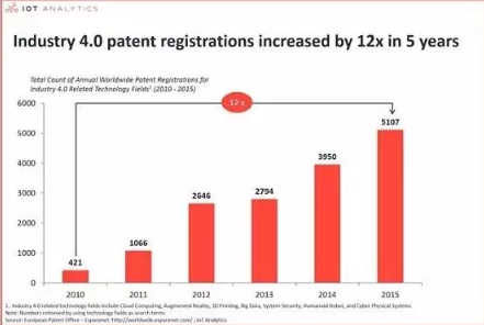 主要結論:與“工業4.0”相關的專利注冊總數在短短五年內激增了12倍。