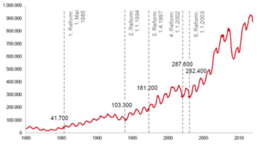 圖2 1990年-2010年德國(guó)就業(yè)市場(chǎng)