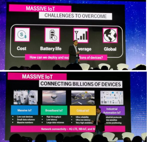 T-Mobile IoT VP Balaji Sridharan在演講中分享了T-Mobile在NB-IOT上的應用場景,他說大規模IoT普及需要克服成本、續航、覆蓋和全球標準的挑戰,還對比了NB-IOT和Lora,sigfox,甚至還黑了一下WiFi說它延時高還有堵塞,估計讓搞這幾個技術的人心堵挺了半天。