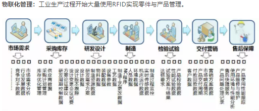 物聯(lián)化管理:工業(yè)生產(chǎn)過程開始大量使用RFID實(shí)現(xiàn)零件與產(chǎn)品管理。