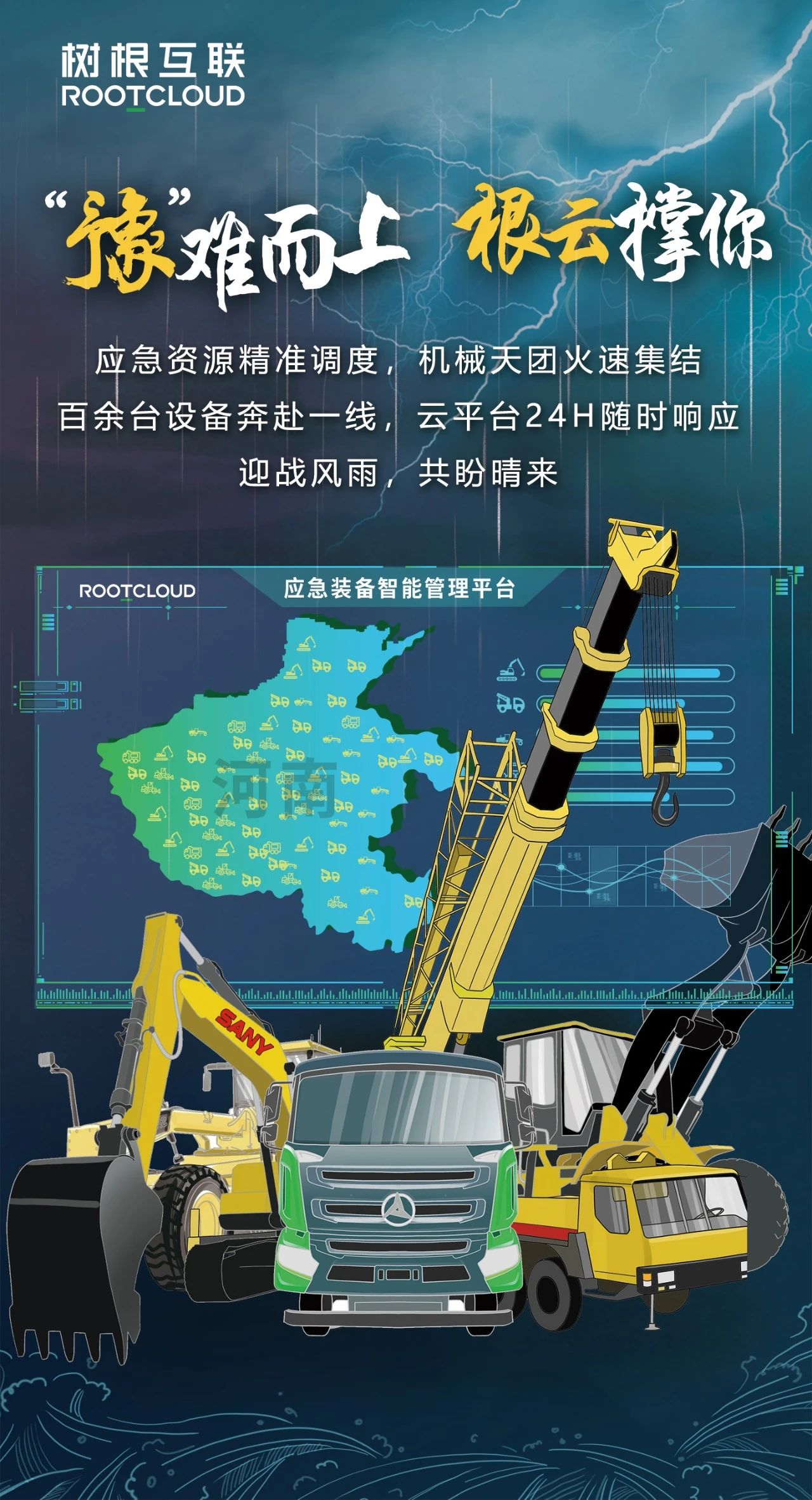 借助“應(yīng)急云平臺(tái)”力量,三一集團(tuán)對(duì)救援設(shè)備調(diào)度的時(shí)效性和準(zhǔn)確性都得到了大幅提升。截至目前,已調(diào)派各類機(jī)械設(shè)備累計(jì)百余臺(tái),包括挖機(jī)、起重機(jī)、裝載機(jī)、平地機(jī)、渣土車等,奔赴防汛救災(zāi)一線。
