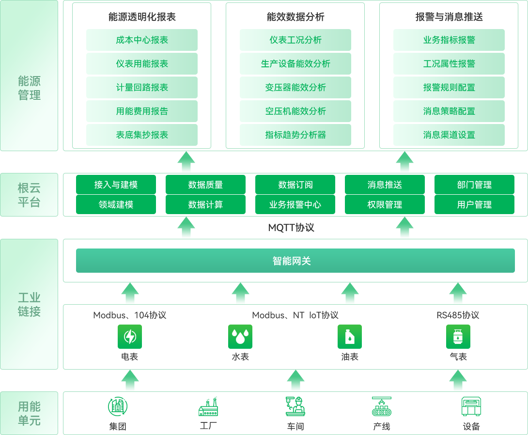 系統(tǒng)支持多維度構建能源成本中心,各維度的用能對象與指標均可自定義,解決能源統(tǒng)計粒度不夠細化的問題,為技改節(jié)能、指標優(yōu)化提供有力數(shù)據(jù)支撐。